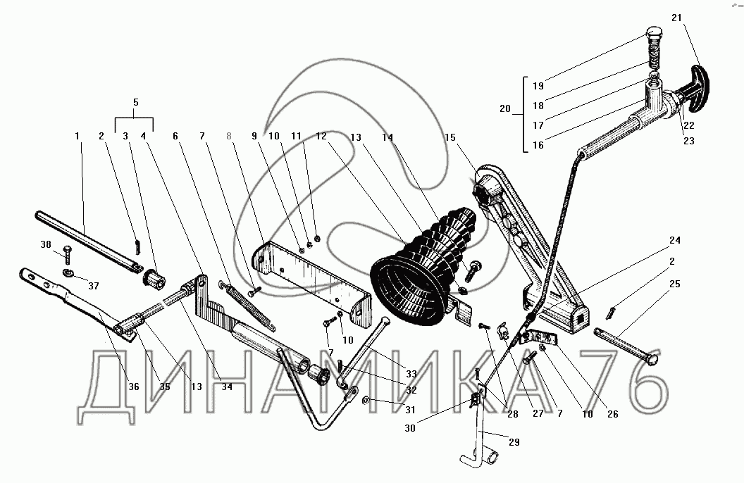 Перечень комплектующих от Привод акселератора на УРАЛ-55571-40