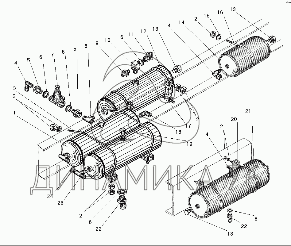 Перечень комплектующих от Установка воздушных баллонов на УРАЛ-55571-40