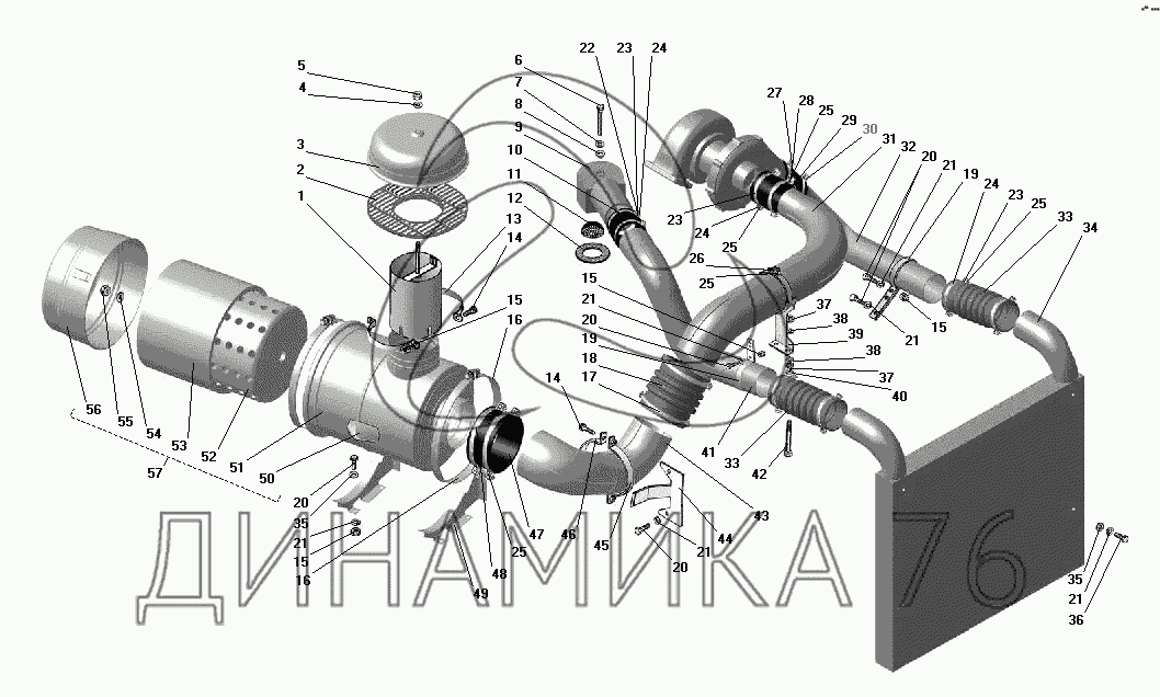 Перечень комплектующих от Воздухопровод с воздушным фильтром на УРАЛ-55571-40