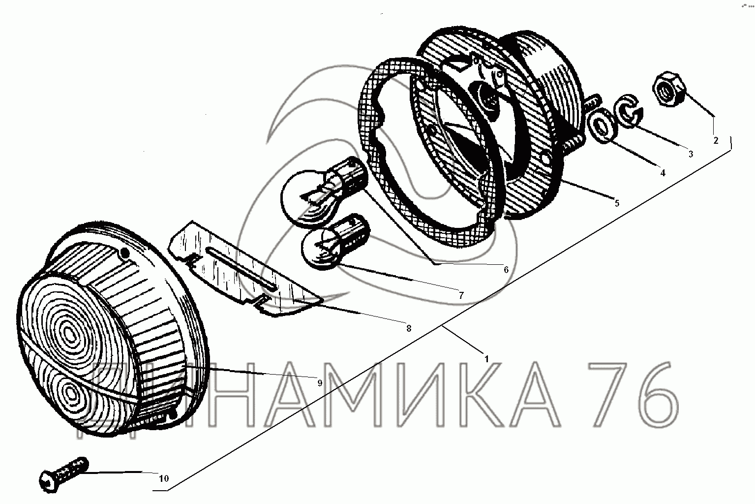 Перечень комплектующих от Фонарь передний на УРАЛ-5557-31
