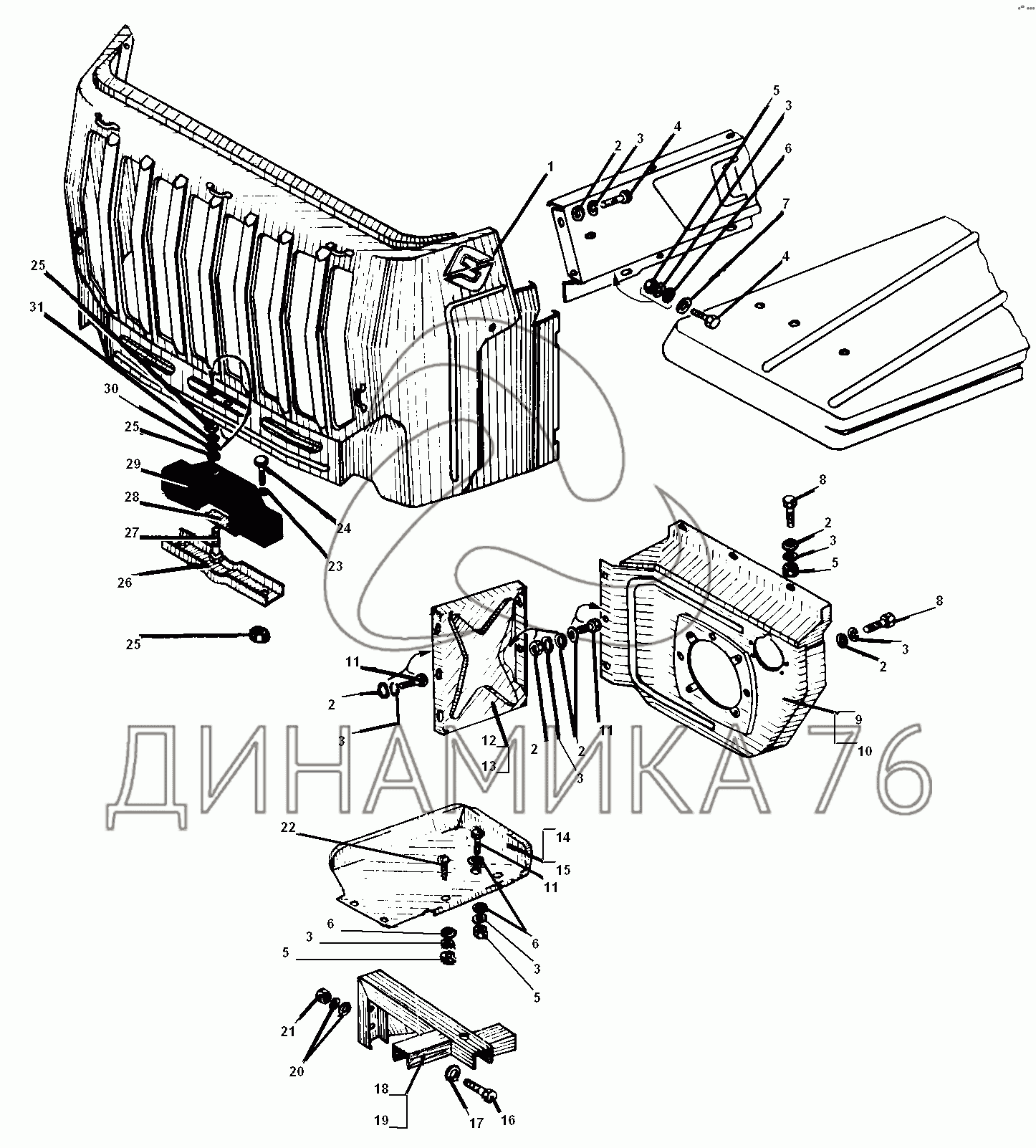 Перечень комплектующих от Облицовка радиатора на УРАЛ-5557-31