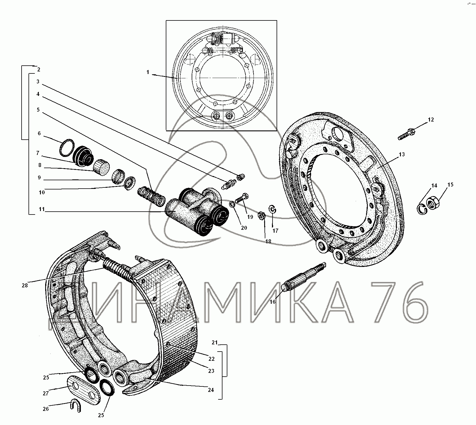 Перечень комплектующих от Рабочий тормоз на УРАЛ-5557-31