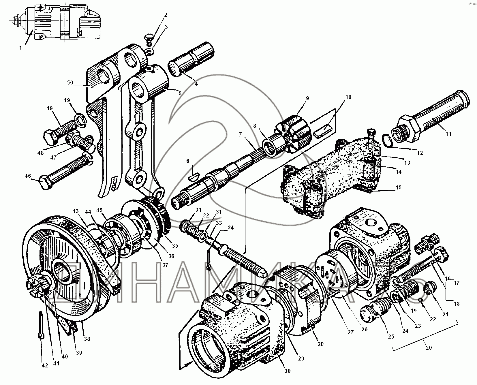 Перечень комплектующих от Усилительный механизм на УРАЛ-5557-31