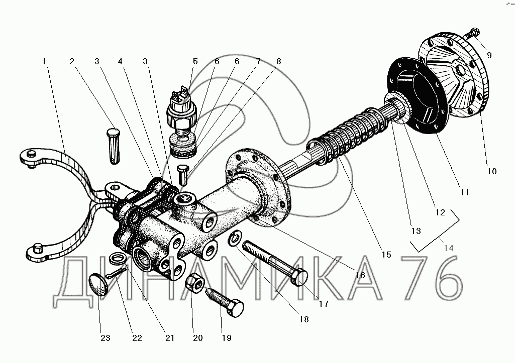 Перечень комплектующих от Механизм включения блокировки дифференциала на УРАЛ-5557-40