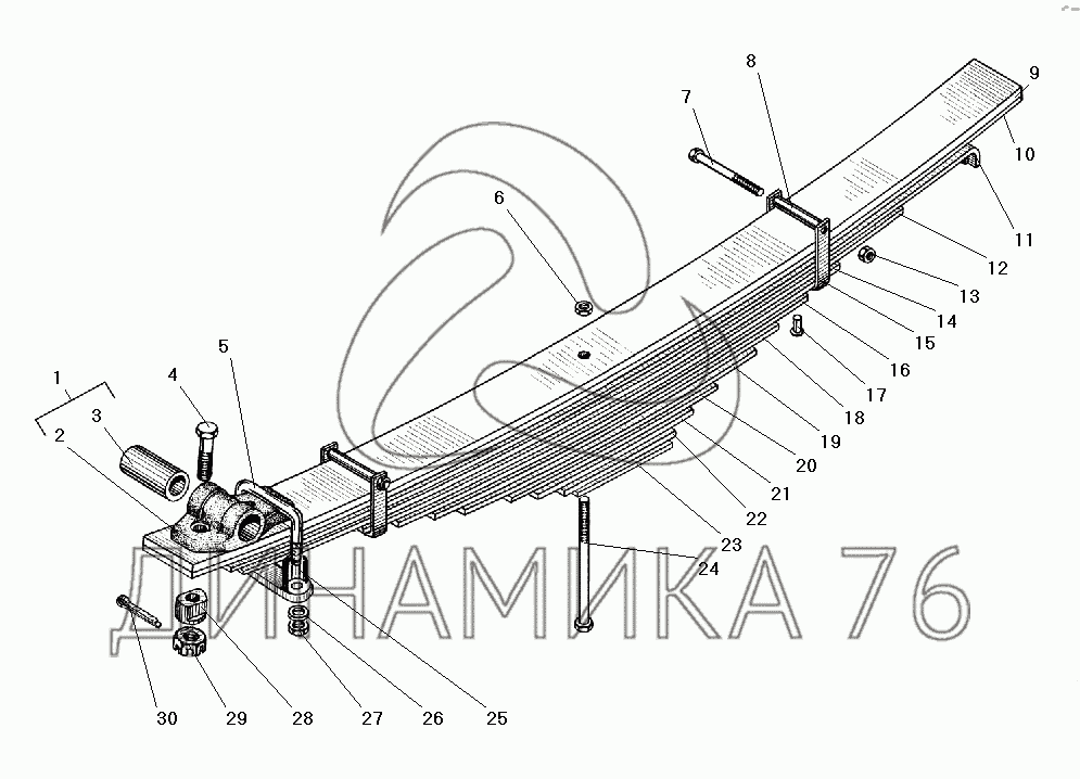 Перечень комплектующих от Передняя рессора на УРАЛ-5557-40