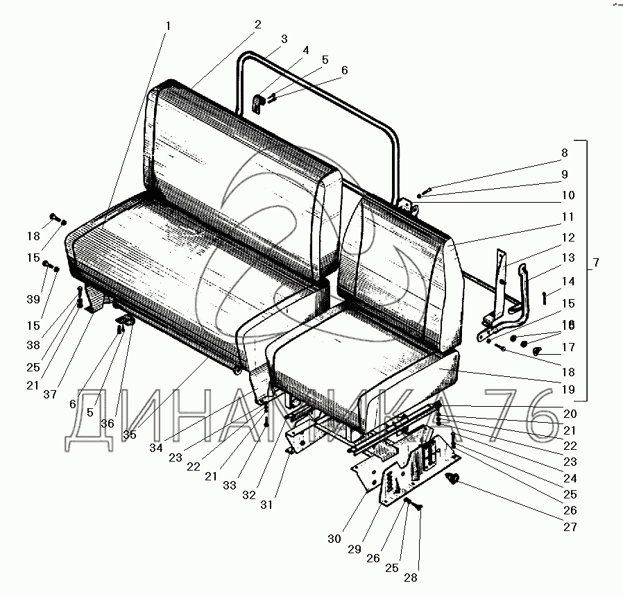 Перечень комплектующих от Сиденья водителя и пассажиров на УРАЛ-5557-40