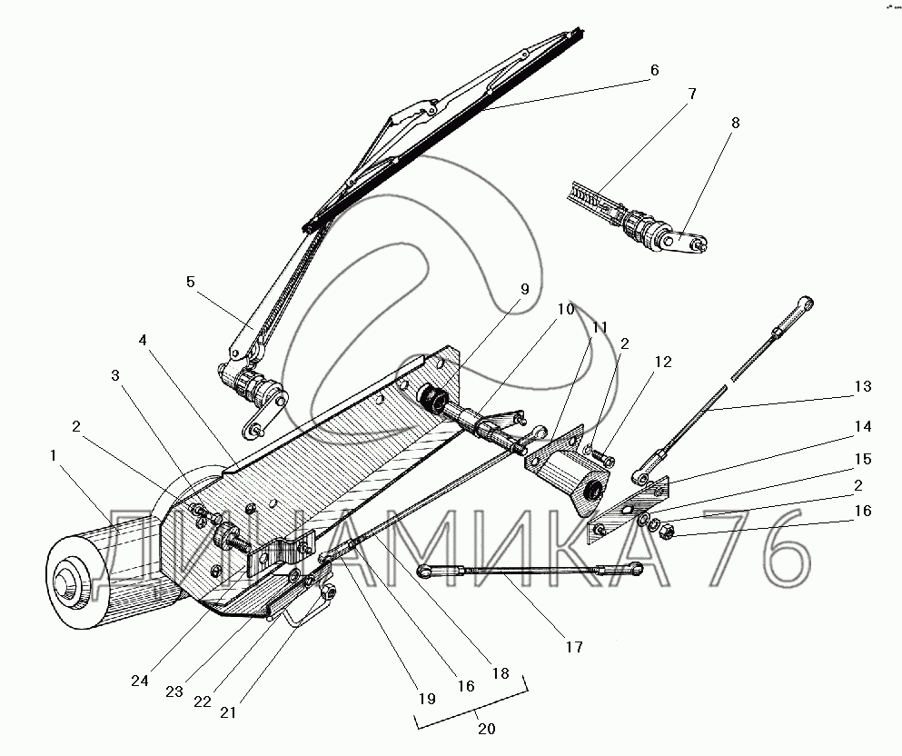 Перечень комплектующих от Стеклоочиститель и его привод на УРАЛ-5557-40