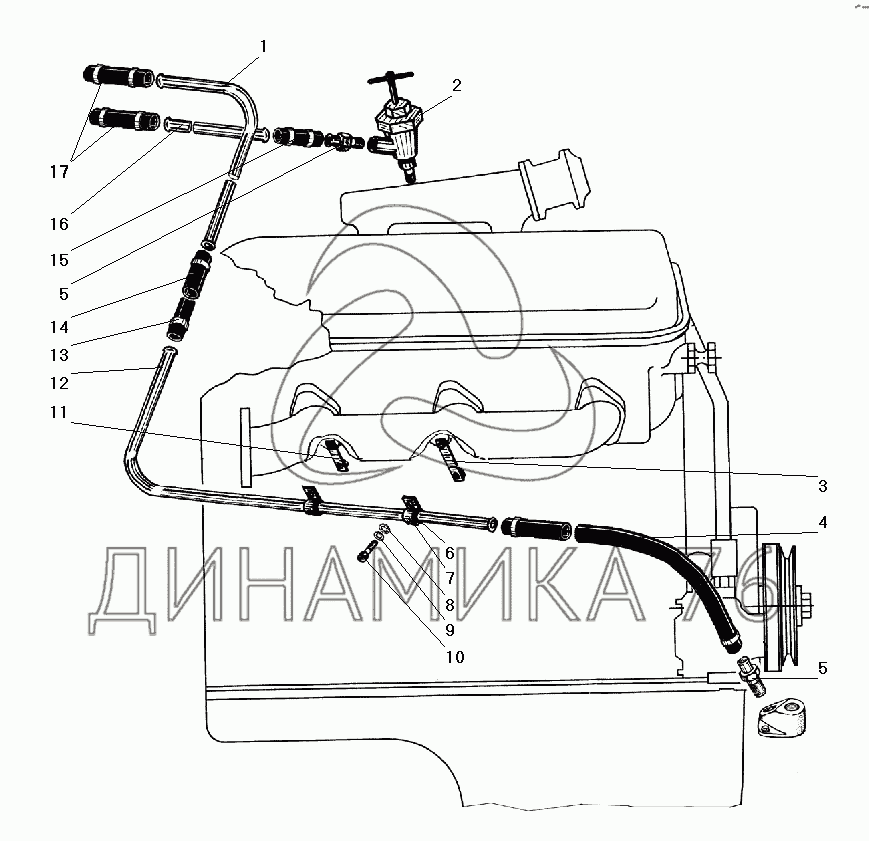 Перечень комплектующих от Трубопроводы системы отопления кабины на УРАЛ-5557-40