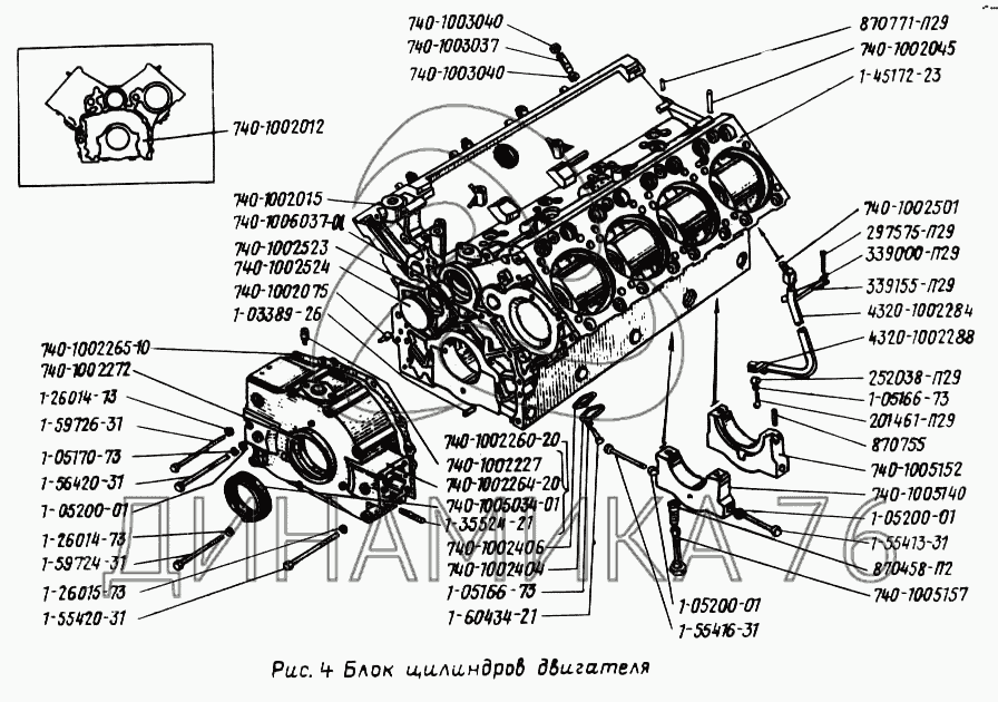 Перечень комплектующих от Блок цилиндров двигателя на УРАЛ-5557