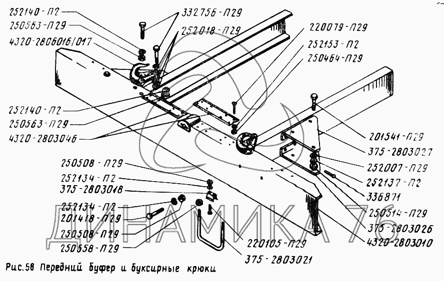 Схемы запчастей предназначены для справочных целей! Мы продаем не все запчасти от Передний буфер и буксирные крюки на УРАЛ-5557, представленные в этом списке.