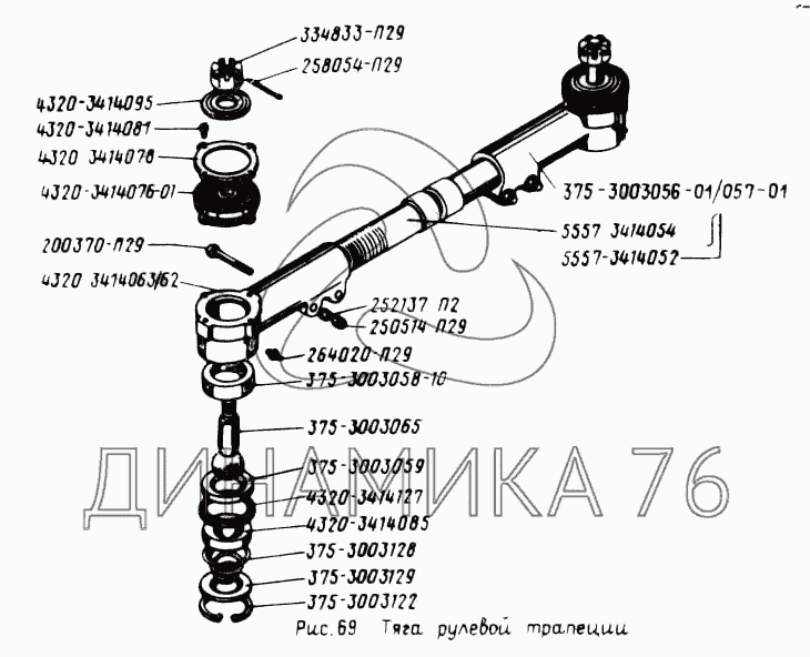 Перечень комплектующих от Тяга рулевой трапеции на УРАЛ-5557