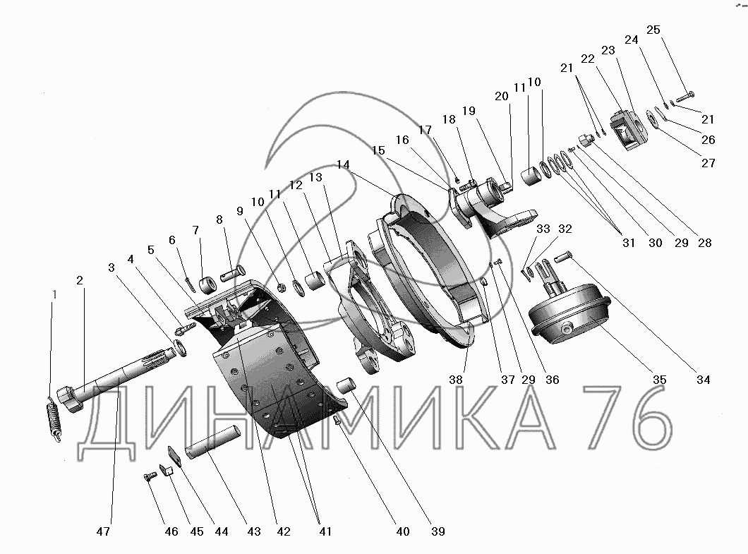 Перечень комплектующих от Рабочий тормоз переднего колеса на УРАЛ-63674