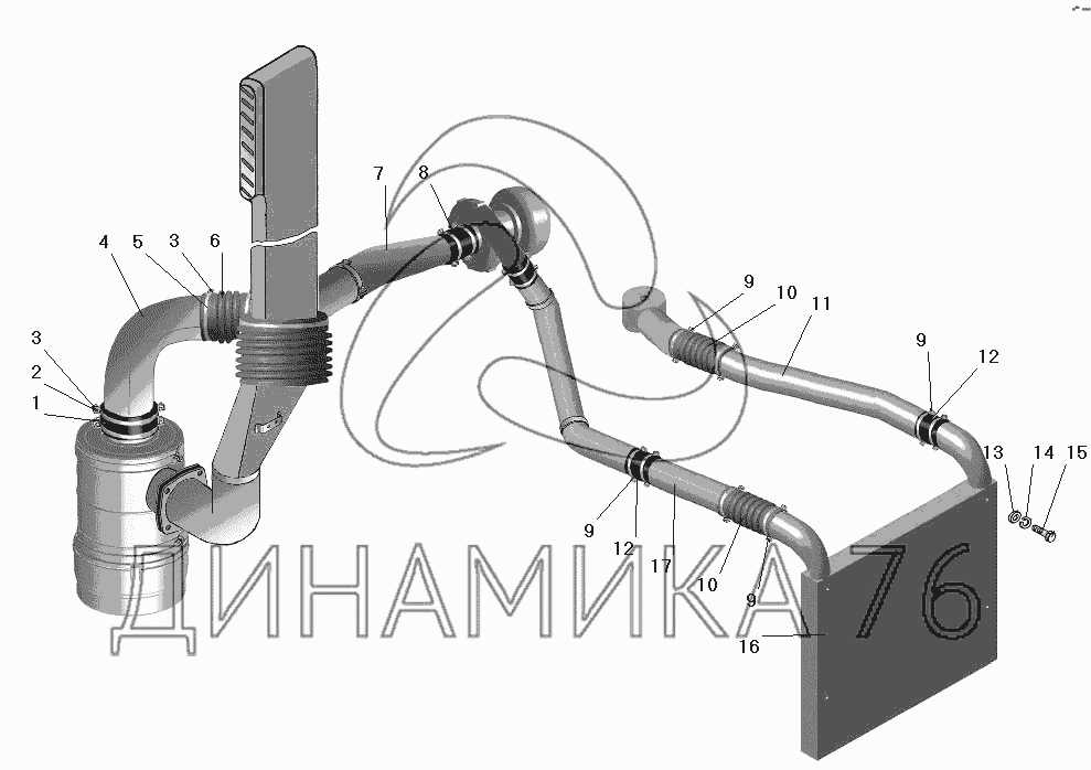 Перечень комплектующих от Система питания двигателя воздухом на УРАЛ-63674