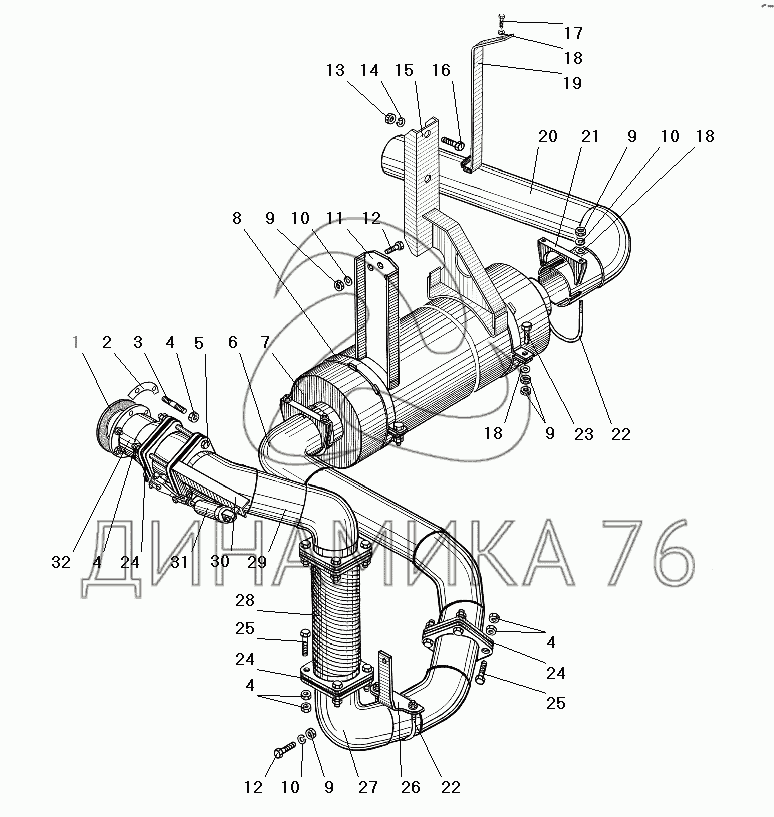 Перечень комплектующих от Система выпуска газов на УРАЛ-63674