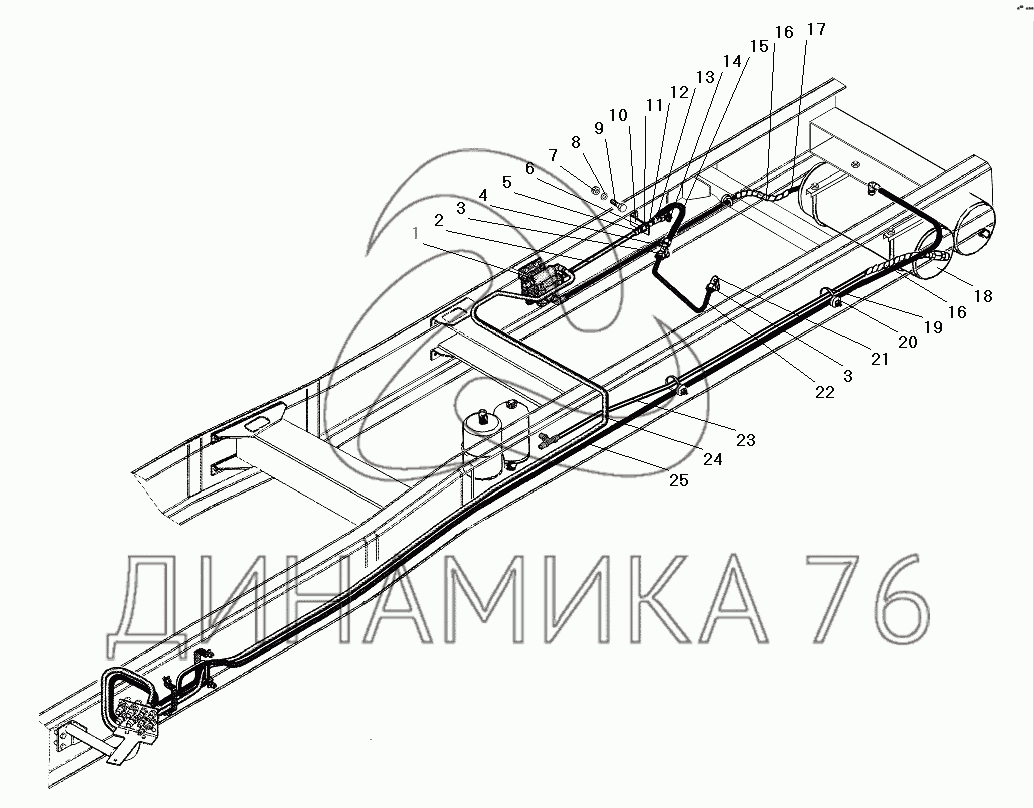 Установка пневмопривода стояночного тормоза — УРАЛ-63674:
