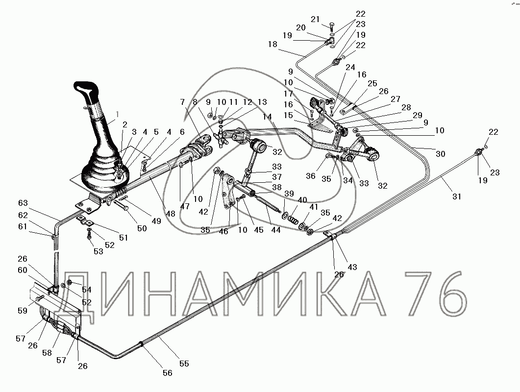 Перечень комплектующих от Установка управления коробкой передач на УРАЛ-63674