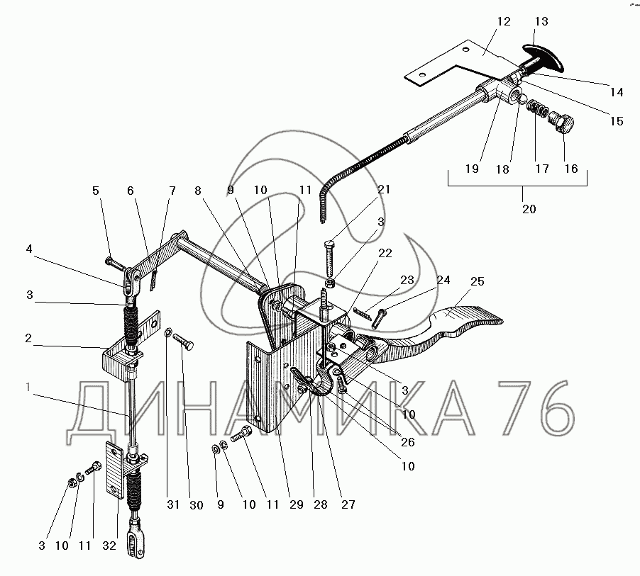 Перечень комплектующих от Привод акселератора на УРАЛ-63685