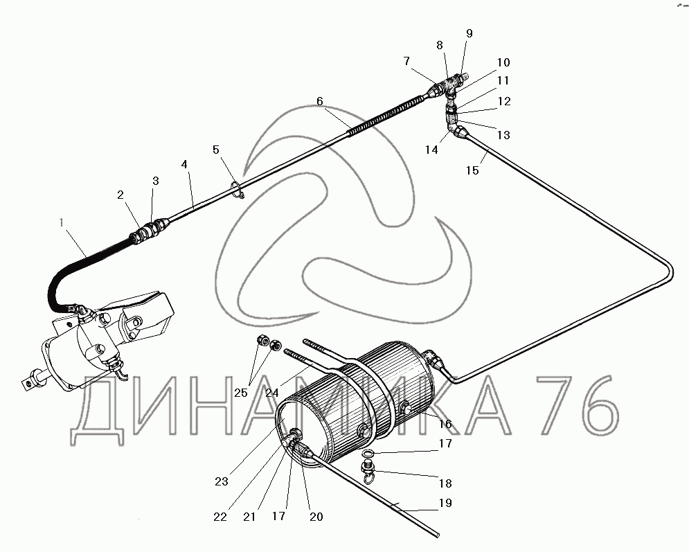 Перечень комплектующих от Установка пневмосистемы управления сцеплением на УРАЛ-63685