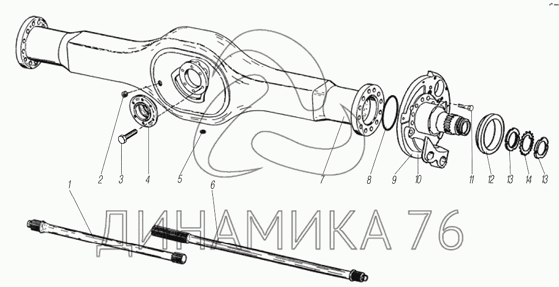 Картер полуосей среднего моста — УРАЛ-63704: