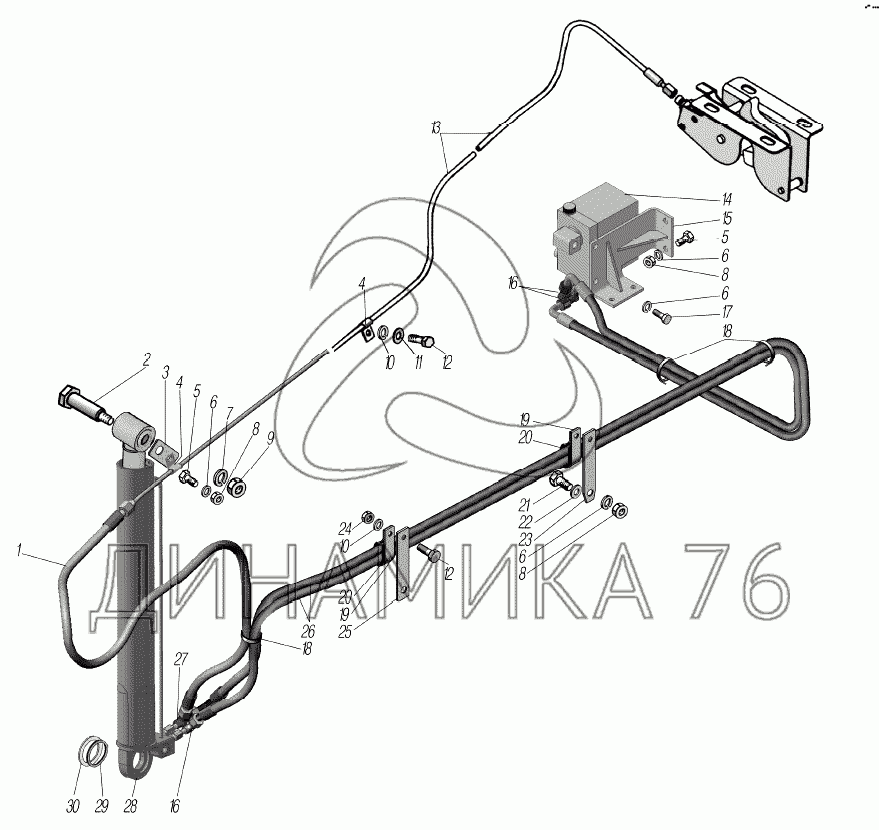 Перечень комплектующих от Механизм опрокидывания кабины на УРАЛ-63704