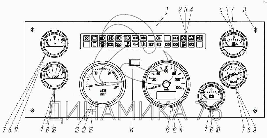 Панель приборов на УРАЛ-63704 (до 2011 г.)