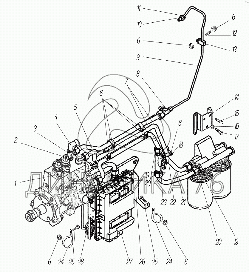 Трубки от топливного насоса к топливному фильтру в сборе