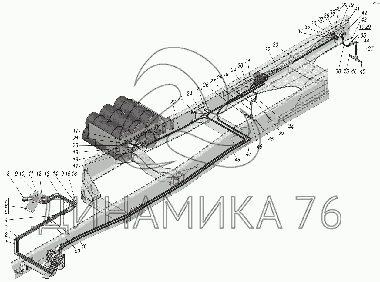 Установка пневмопривода стояночного тормоза — УРАЛ-63704: