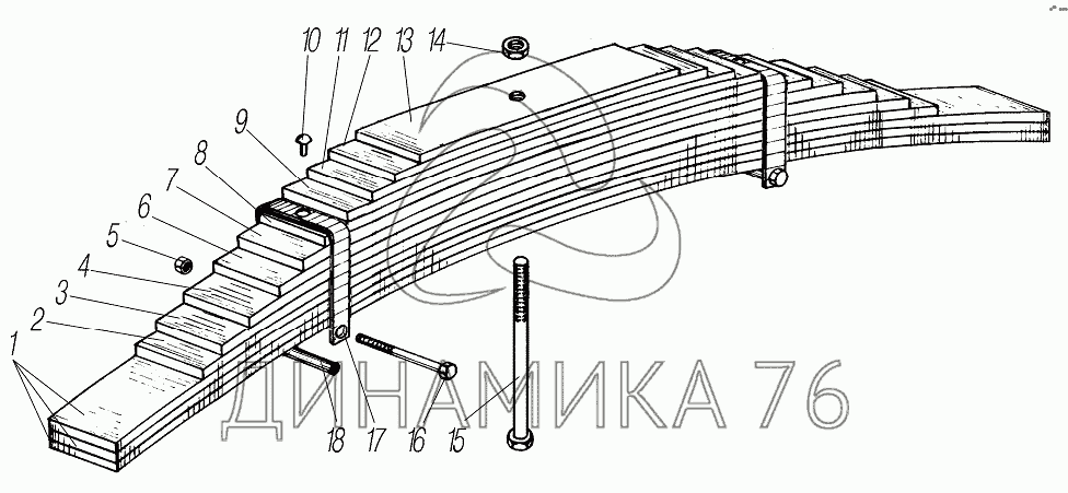 Перечень комплектующих от Задняя рессора на УРАЛ-63704