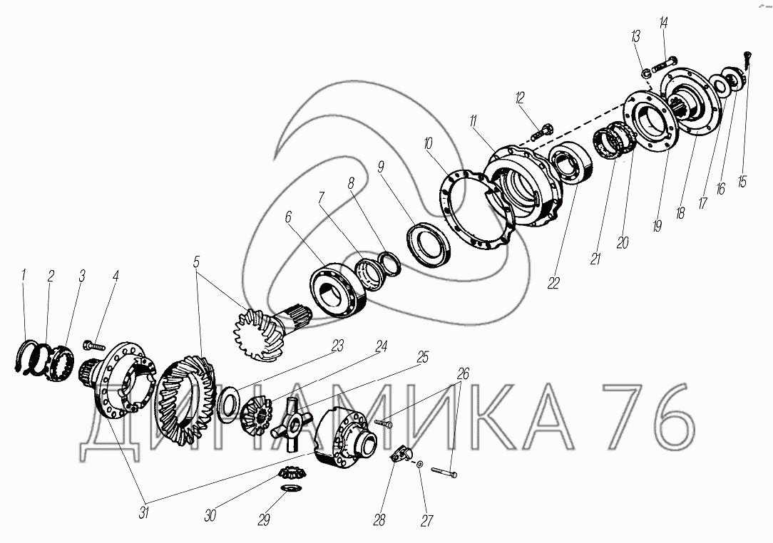 Перечень комплектующих от Редуктор заднего моста на УРАЛ-6370-1121
