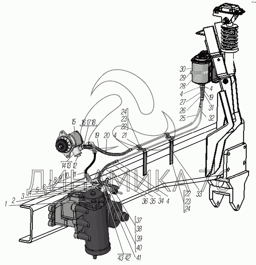 Перечень комплектующих от Рулевое управление на УРАЛ-6370-1151