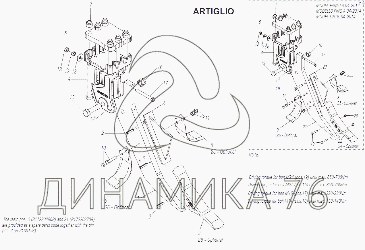 Перечень комплектующих от ARTIGLIO OPERATOR ELEMENT на Gaspardo ARTIGLIO