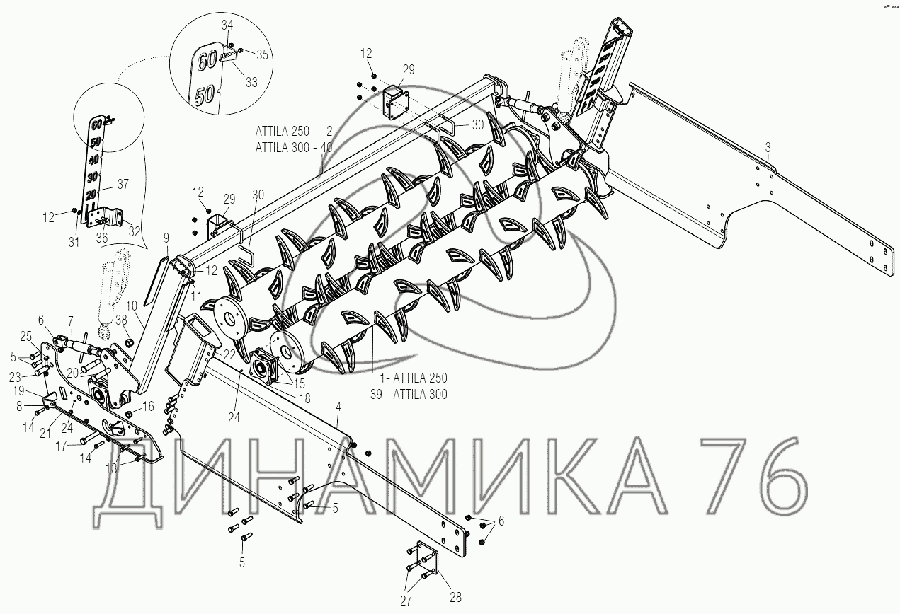 Перечень комплектующих от HYDRAULICAL DOUBLE REAR ROLLER на Gaspardo ATTILA