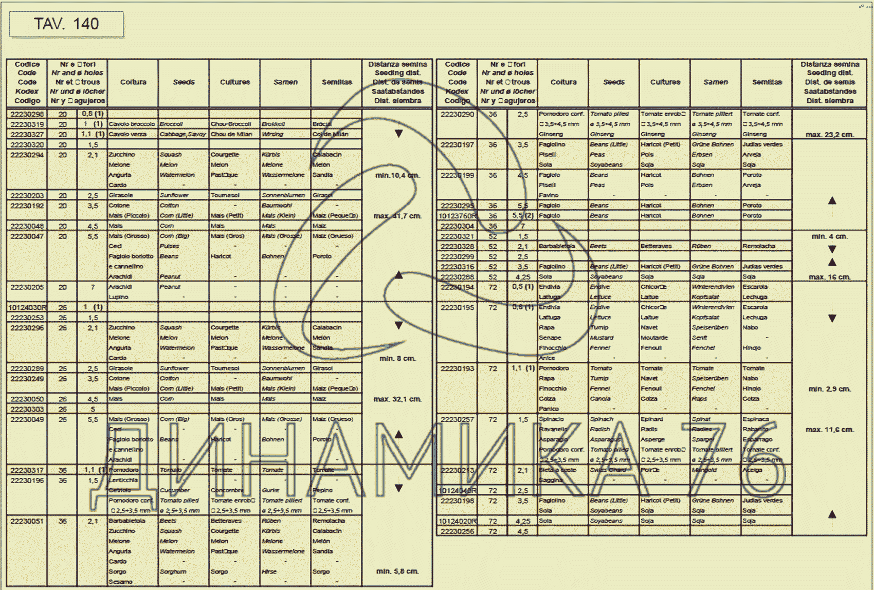 Перечень комплектующих от SOWING DISCS на MAESTRA (MT)