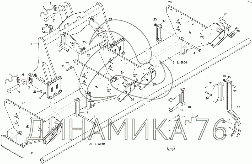 Перечень комплектующих от FRAME AND THREE-POINT Hitch на MEGA 600