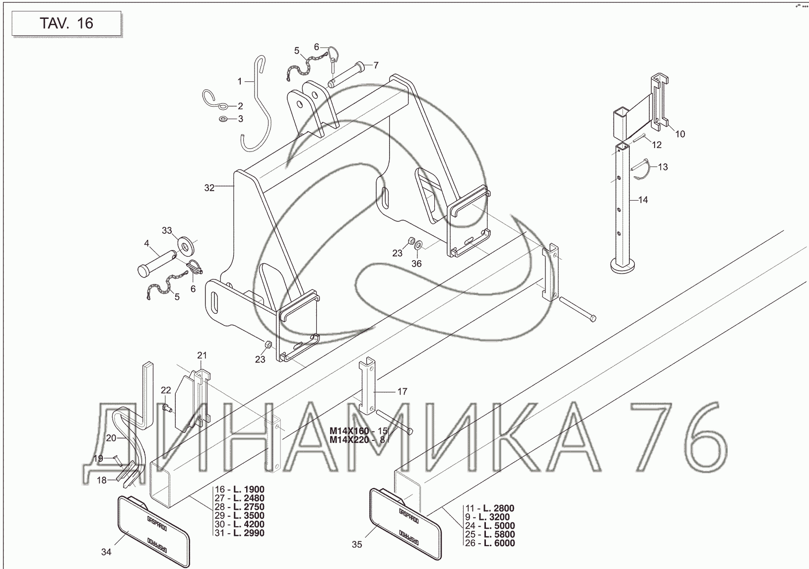Перечень комплектующих от FRAME AND 3-POINT ATTACHMENT на MT
