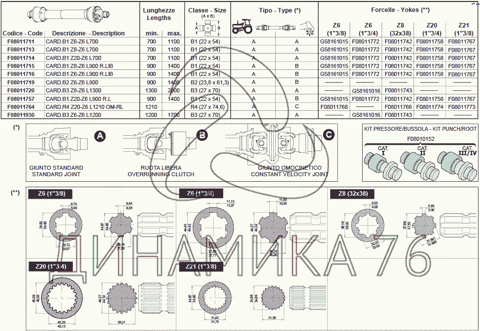 Перечень комплектующих от CARDAN SHAFT на ROMINA