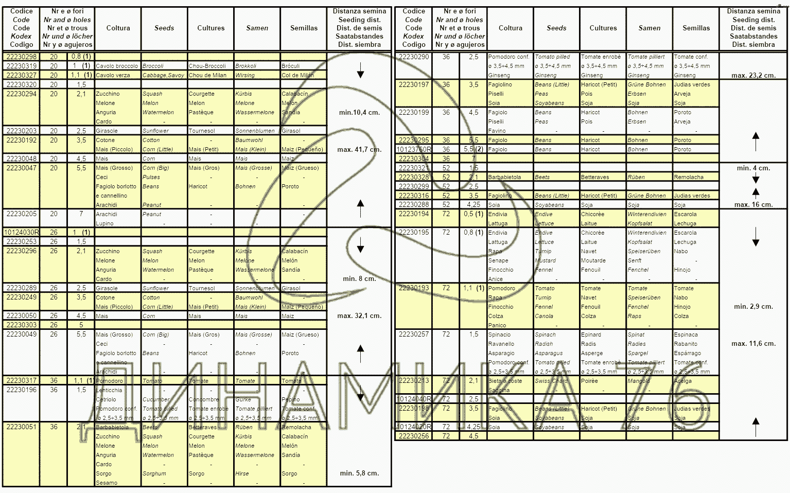 Перечень комплектующих от THE SOWING DISKS на Сеялка Gaspardo MTR
