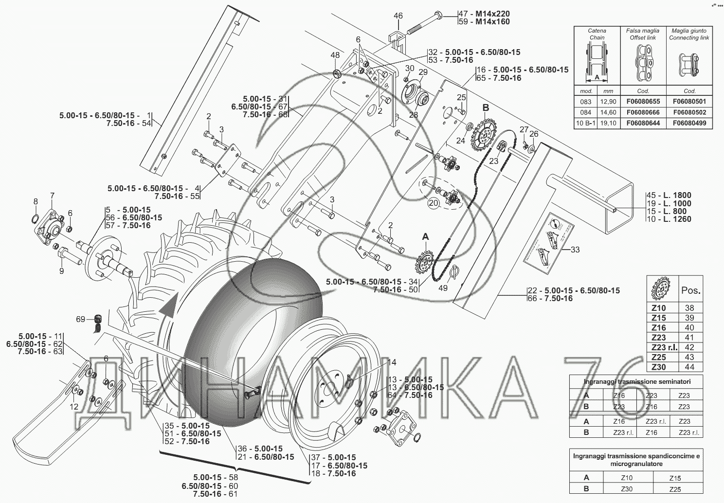 Перечень комплектующих от RUOTE DI TRASMISSIONE на Сеялка серии МТ