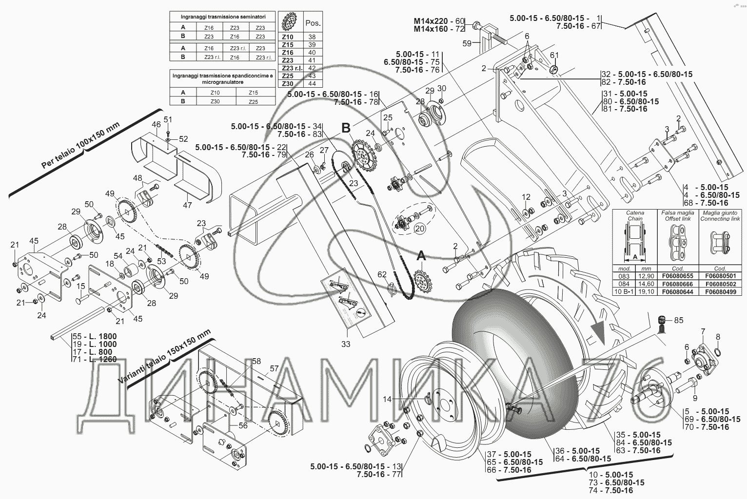 Перечень комплектующих от RUOTE DI TRASMISSIONE ANTERIORI на Сеялка серии МТ