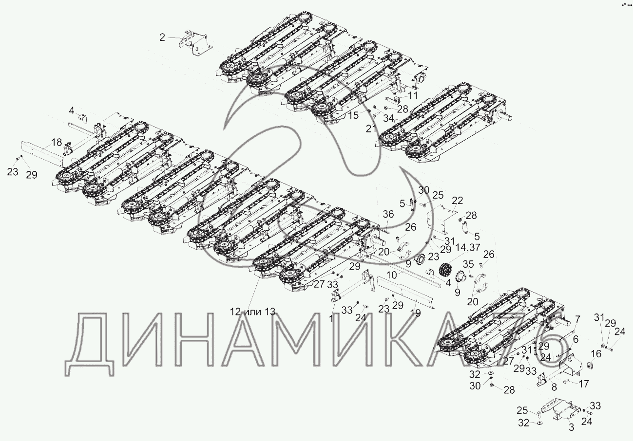 Перечень комплектующих от Жатка КЗК 0800000 на КОК-8-2
