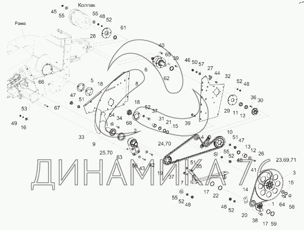 Перечень комплектующих от Жатка КЗК 0800000-01 на КОК-8-4
