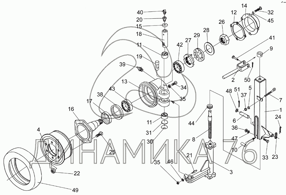 Перечень комплектующих от Колесо опорное правое на КПК Полесье-3000