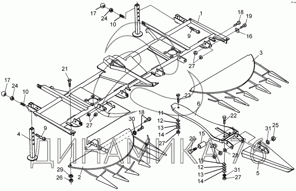 Перечень комплектующих от Рама жатки на КПК Полесье-3000
