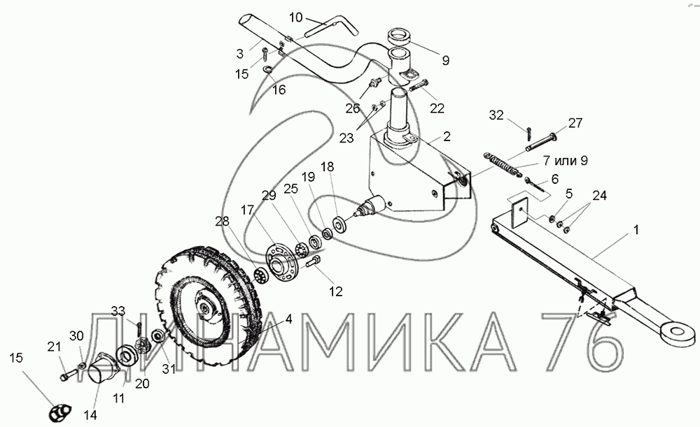 Перечень комплектующих от Тележка передняя на КПК Полесье-3000
