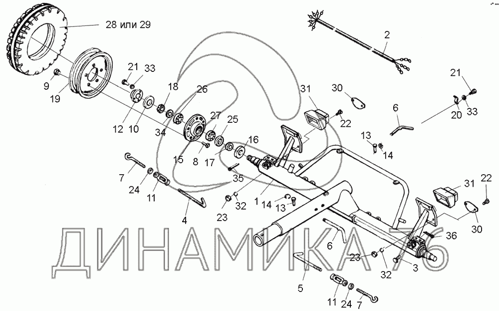Перечень комплектующих от Тележка задняя на КПК Полесье-3000