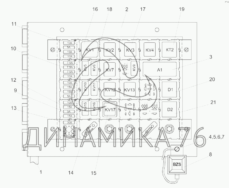 Перечень комплектующих от Блок реле КС-100-0700890 на KС-100