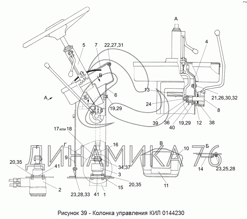 Перечень комплектующих от КИЛ 0144230 Колонка управления на КСК-100А-3
