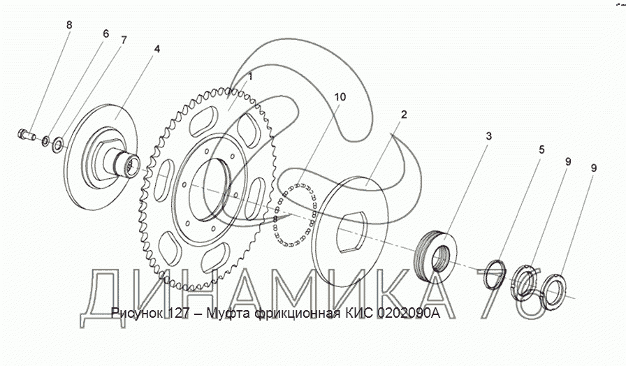 Перечень комплектующих от КИС 0202090А Муфта фрикционная на КСК-100А-3