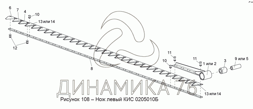 Перечень комплектующих от КИС 0205010Б Нож левый на КСК-100А-3