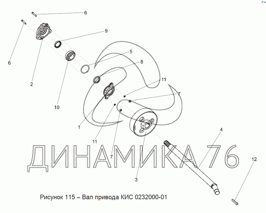 Перечень комплектующих от КИС 0232000-01 Вал привода на КСК-100А-3